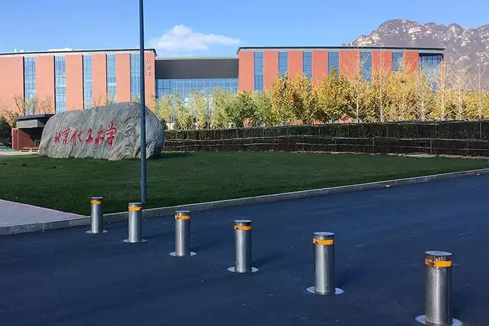 Automatic bollards form a physical barrier that can be raised or lowered to control vehicle access, deterring unauthorized entry into restricted areas.